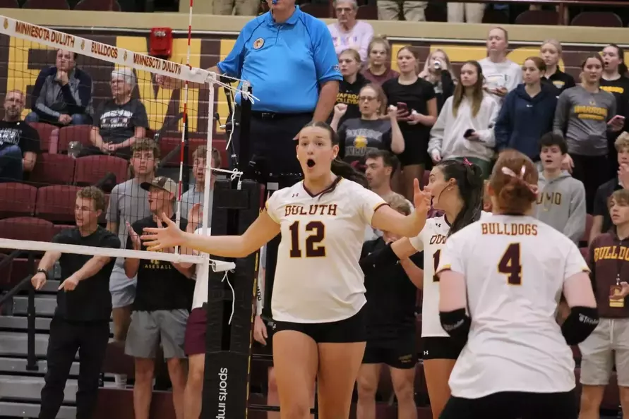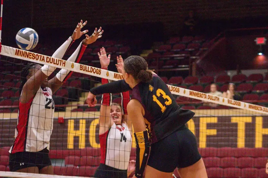 The No. 13 University of Minnesota Duluth Volleyball Team dropped its road match at No. 23 Northern State, 3-0 (17-25, 17-25, 13-25), Friday night in Aberdeen, S.D. The Bulldogs fell to 13-2 on the season and 6-2 in Northern Sun Intercollegiate Conference (NSIC) play, while the Wolves moved to 12-4 overall and 4-4 in league action.