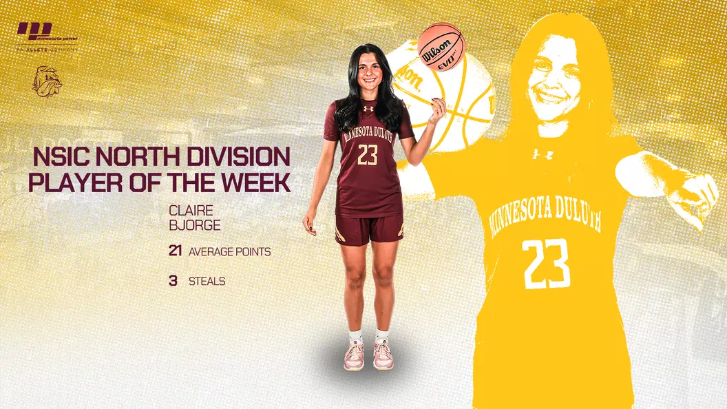 Bjorge Awarded NSIC North Division Player of the WeekClaire Bjorge of the University of Minnesota Duluth women's basketball team has earned both her career's first Northern Sun Intercollegiate Conference (NSIC) North Division Player of the Week award and the team's first of the 2025-26 season.
